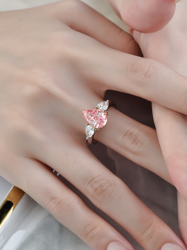 Big Size Jewelry Design Rosa Pear Lab Gioielli Diamanti Certificati Custom-Made Fancy Diamond Wedding Ring