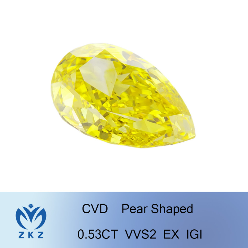 0.53 carati VVS2 giallo in forma di pera personalizzabile diamante CVD senza impostazione.