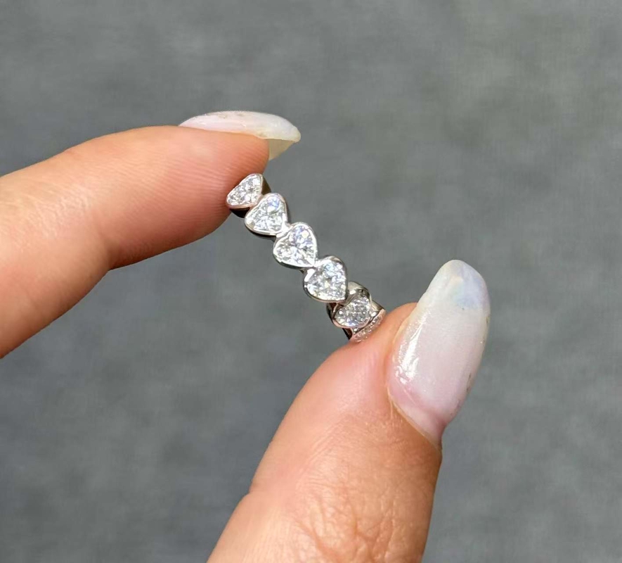 Anelli con diamante a cuore da 1,1 ct coltivati in laboratorio, montatura in platino PT950, fede nuziale