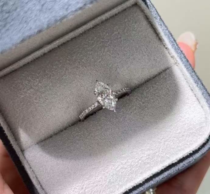 1.213ct Anelli con diamanti a forma di marquise E VVS2 Diamanti coltivati in laboratorio in oro bianco 18k