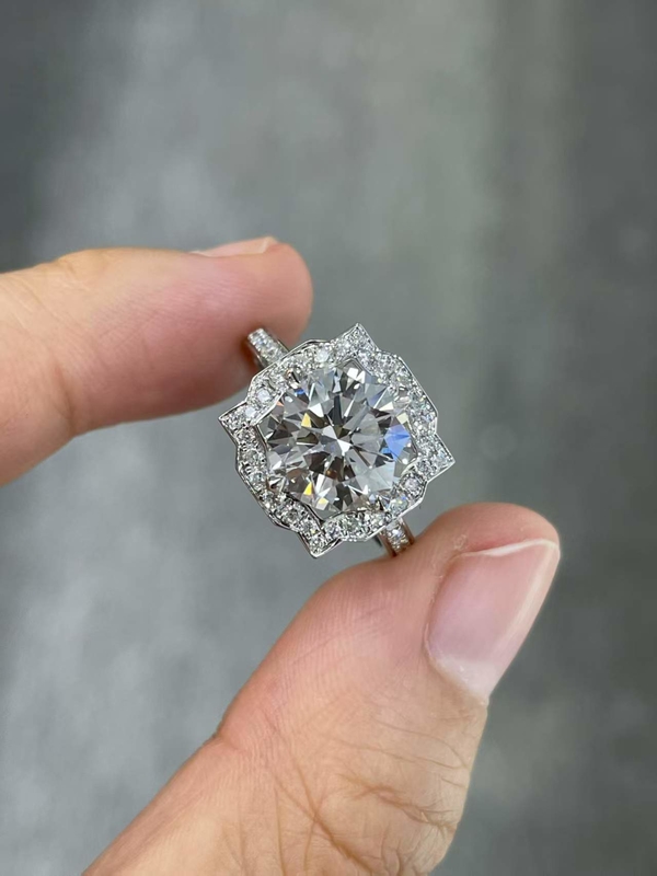 Diamanti coltivati in laboratorio Gioielli Bianco Forma rotonda Anello di fidanzamento Anello rotondo Diamante per festa e anniversario.